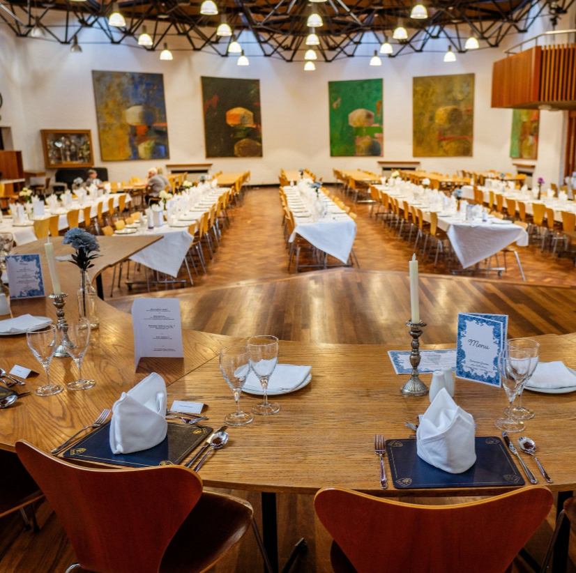 Formal dinners are special nights in Trevs. Students wear formal clothes and gowns (available for purchase on arrival), or black tie on special occasions, and fill the dining hall for a three course meal. Formals typically last about an hour and feature a variety of quirky traditions.